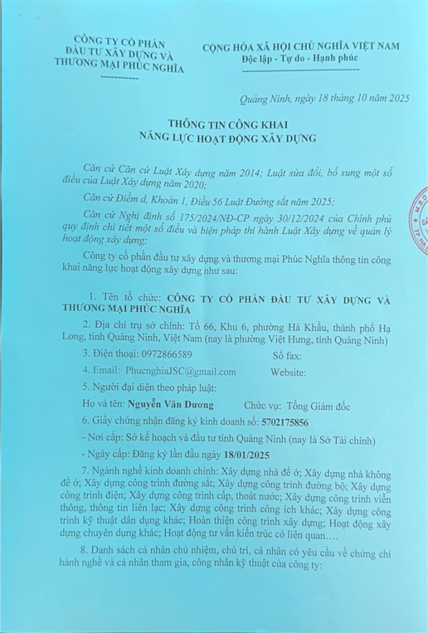 Trải qua nhiều năm hình thành và phát triển, Phúc Nghĩa đã trở thành đối tác tin cậy của nhiều chủ đầu tư, cơ quan quản lý và đơn vị tư vấn xây dựng. Mỗi công trình là một dấu ấn của uy tín, trách nhiệm và sự tận tâm mà chúng tôi luôn hướng tới.